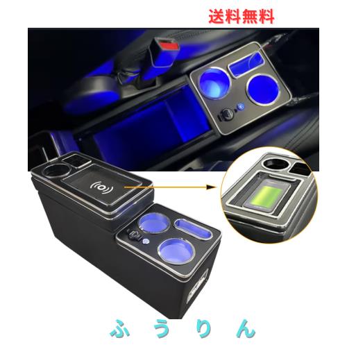 【最新型コンソールボックス】:1.ブルーのLED灯が付き、夜車内が暗い時、小物を探すことに便利になります。車内の灯を開けることが要らなく、運転の安全を確保する。2.前席+後席に 5口USBポートを増設、後部座席の乗客にも便利になります。3.収納も大容量!ティッシュボックスやマスク、スマホなど様々な物を収納できます。