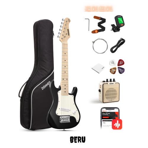 Donner ミニエレキギター 初心者セット 子供向け 30インチ STタイプ ミニアンプ付き 肌に優しいマット質感 軽量 専用ケースとチューナー