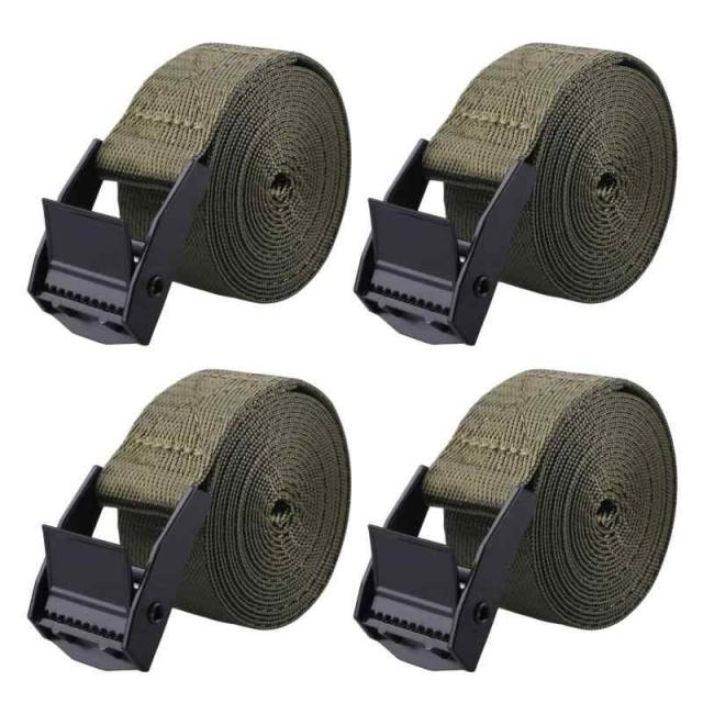Azarxis 荷締めベルト ラッシングベルト 荷締バンド タイダウンベルト 梱包 固定 結束バンド 自転車 バイク 積載 引越し 運搬用 荷締め機 地震対策 4本セット (A-アーミーグリーン, 2m)