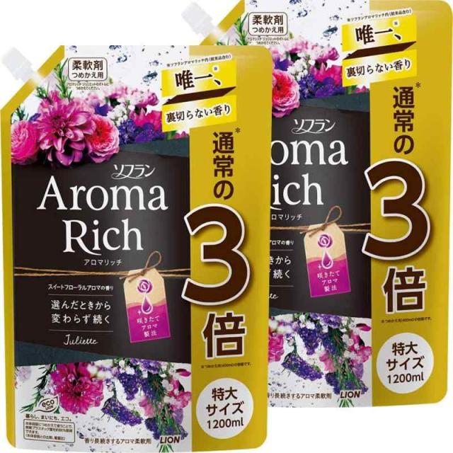【まとめ買い 大容量】ソフラン アロマリッチ ジュリエット(スイートフローラルアロマの香り) 柔軟剤 詰め替え 特大1200ml×2個セット