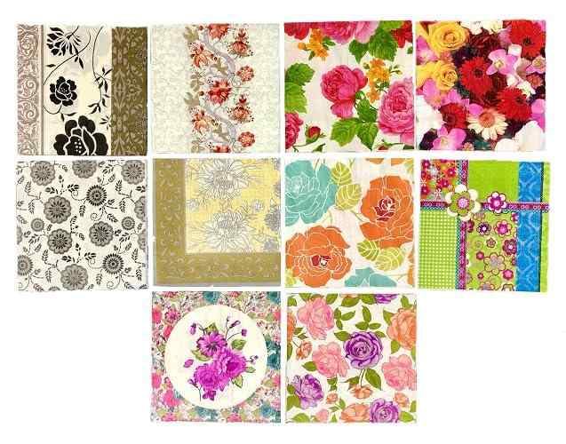 ペーパーナプキン 10種類 各1枚入 計10枚 紙ナプキン デコパージュ フラワー 薔薇 花柄