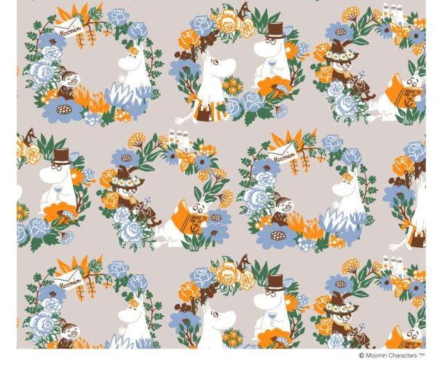 たくさんの草花に紛れてムーミンたちがおもいおもいに楽しんでいるようすがとてもかわいらしく、ぜひお手に取ってキャラクターたちを探していただきたい一品です。