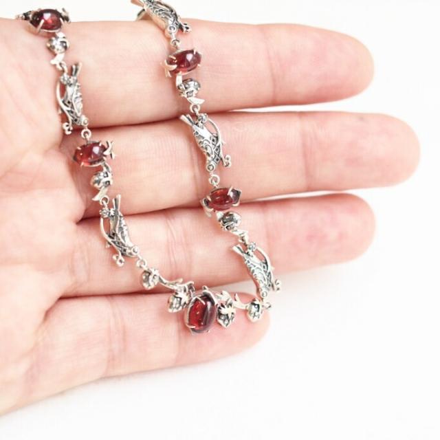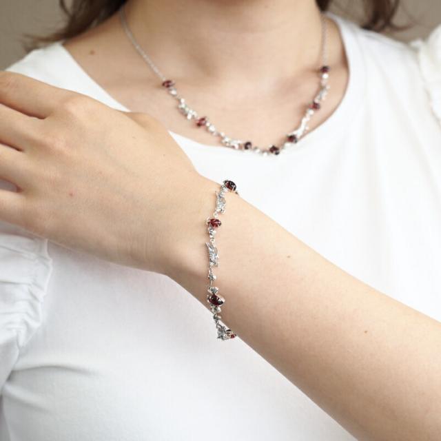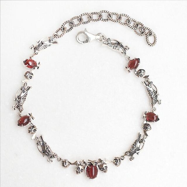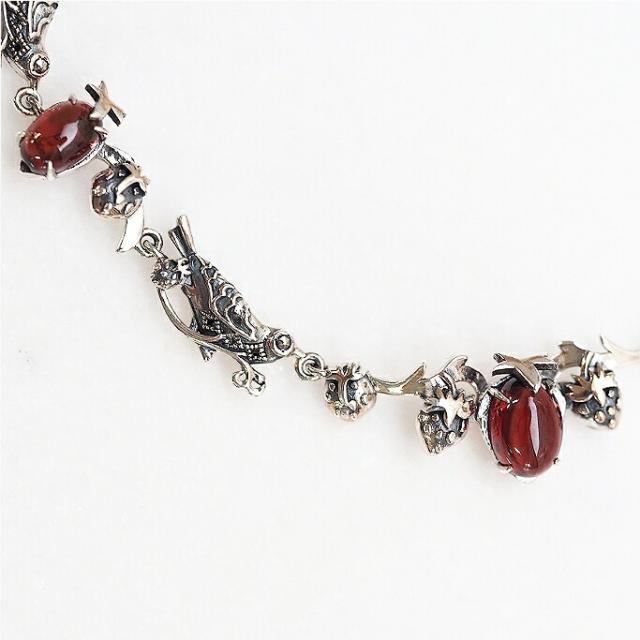 ウィリアム・モリス いちご泥棒 ブレスレット シルバー ガーネット シルバー925 銀細工 装飾 彫刻 繊細 芸術 美術 アート 植物 果実 フルーツ イチゴ