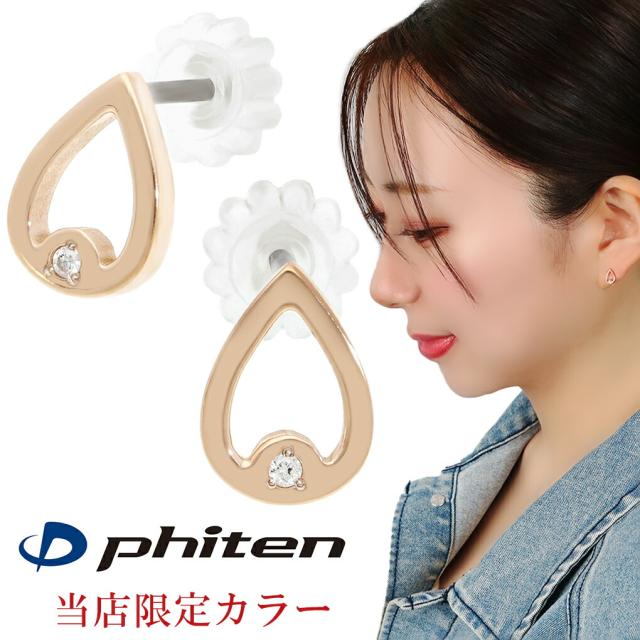 ファイテン ピアス チタン レディース ダイヤモンド 2P 両耳用 fe-fe phiten ピンク レディースピアス 金属アレルギーフリー スポーツ 健康 シンプル
