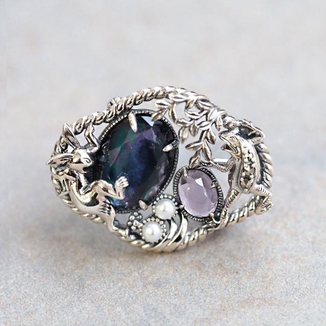 トリプレット(オニキス、白蝶貝、クォーツ)、アメシスト、パール