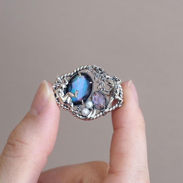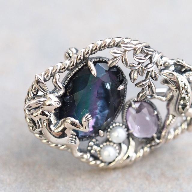 鳥獣戯画 相撲 うさぎ 蛙 ブローチ ペンダントトップ (チェーンなし) ネックレス ペンダント トップ ヘッド シルバー トリプレットストーン 925 兎