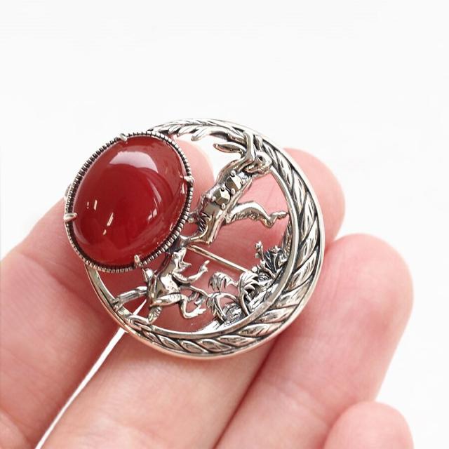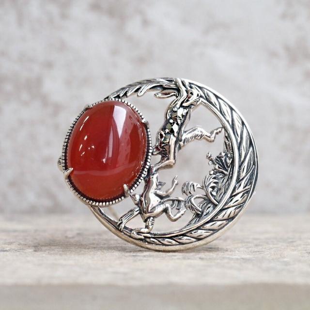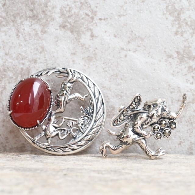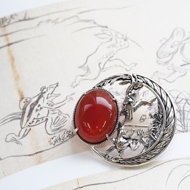 鳥獣戯画 印地打ち うさぎ 蛙 ブローチ ペンダントトップ (チェーンなし) ネックレス ペンダント トップ ヘッド シルバー カーネリアン 925 兎 カエル