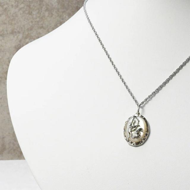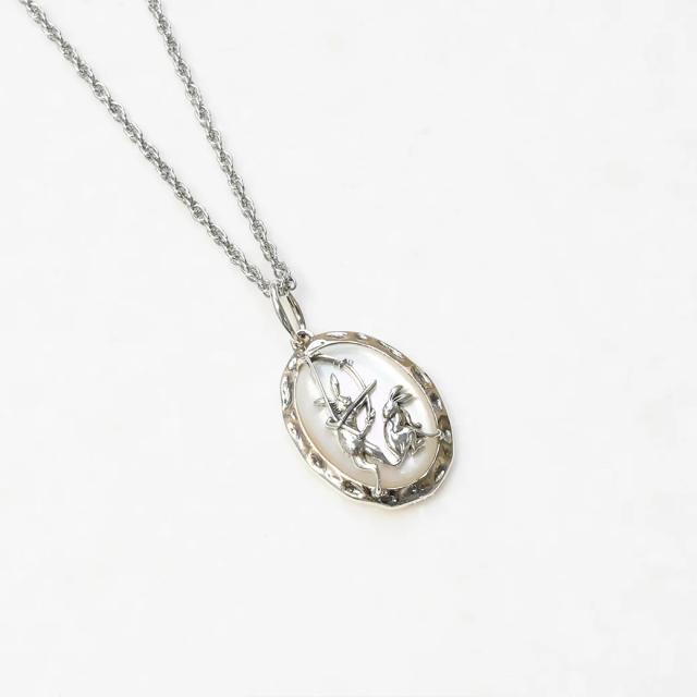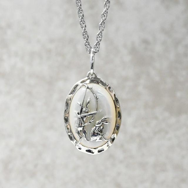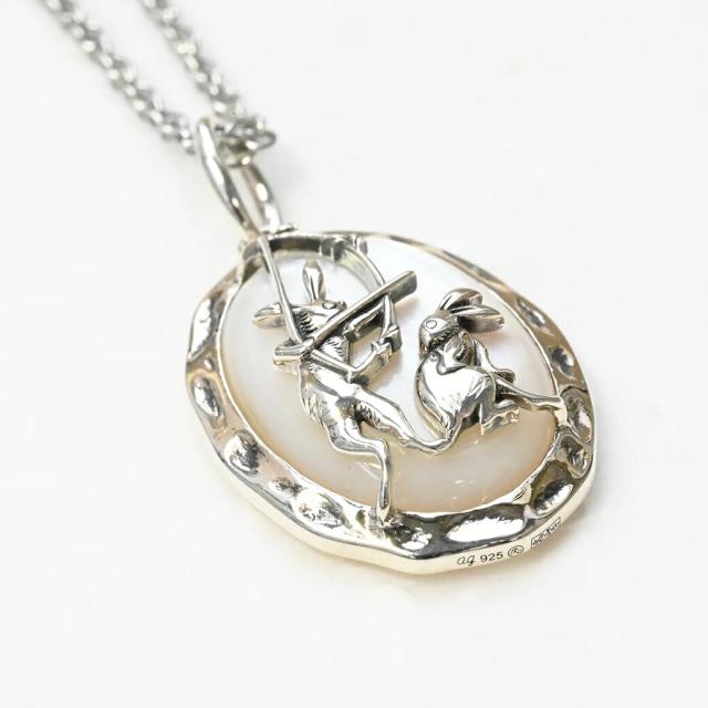 鳥獣戯画 賭弓 うさぎ ペンダントトップ (チェーンなし) ネックレス ペンダント トップ ヘッド シルバー 白蝶貝 925 兎 弓矢 勝負 銀細工 装飾 彫刻