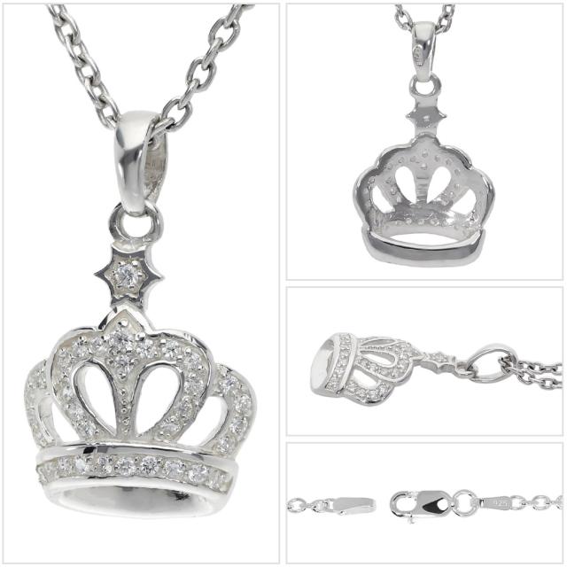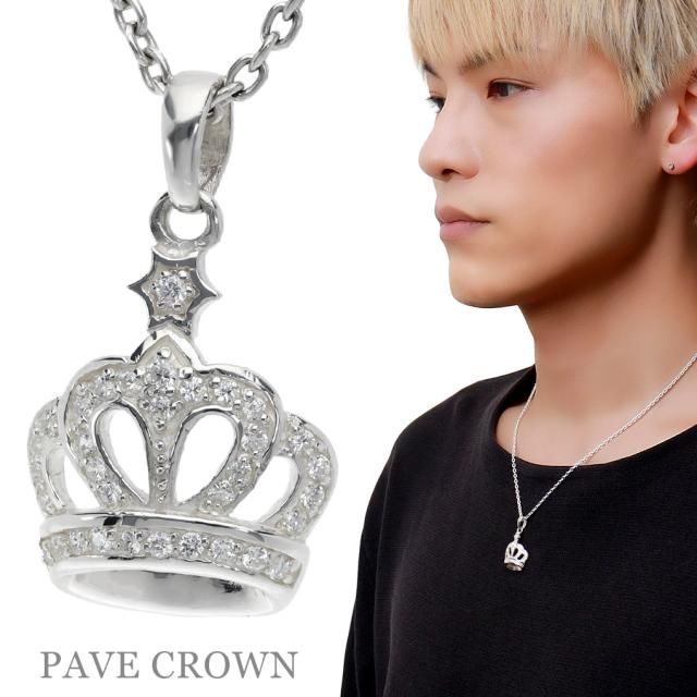 王冠 パヴェ クラウン ネックレス ペンダント ペンダントトップ ペンダントチャーム シルバー シンプル キラキラ ジルコニア 小ぶり 小さめ 控えめ