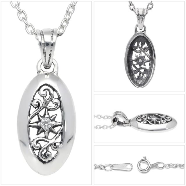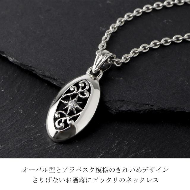 オーバル アラベスク ジルコニア ネックレス ペンダント ペンダントトップ ペンダントチャーム シルバー 唐草 モチーフ 唐草模様 アラベスク柄 透かし