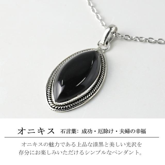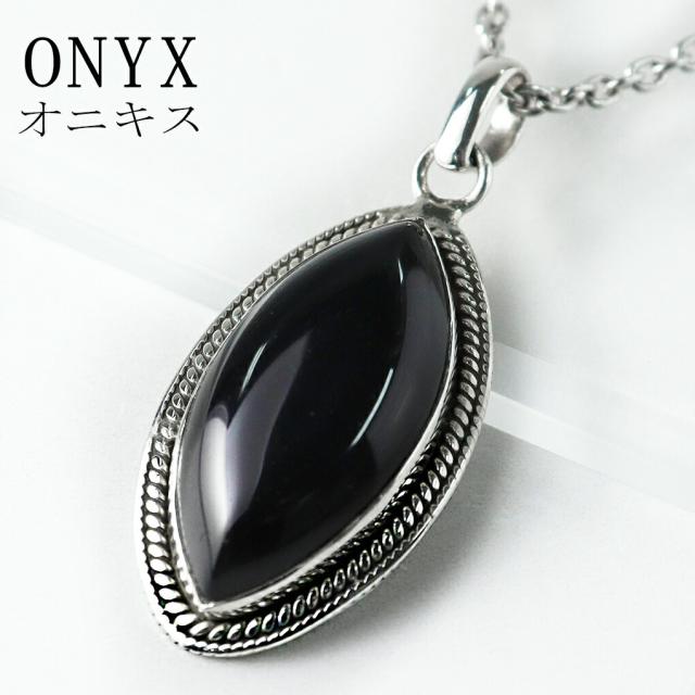 オニキス シルバー ネックレス ペンダントトップ マーキス オニキスネックレス 黒瑪瑙 ブラックオニキス 魔除け 天然石 パワーストーン ペンダント