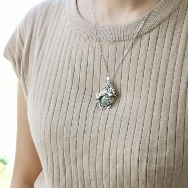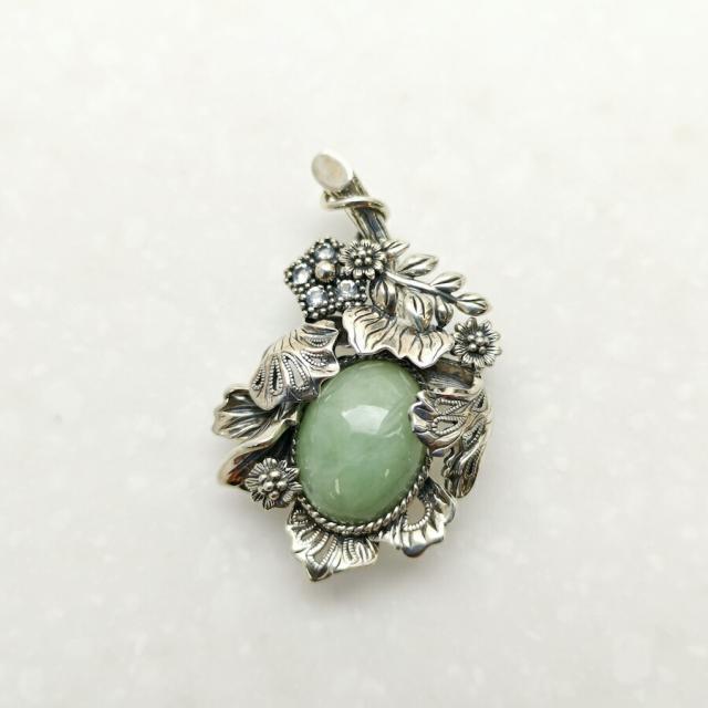 ウィリアム・モリス るりはこべ ペンダント ブローチ ペンダントトップ (チェーンなし) ネックレス トップ ヘッド シルバー 翡翠 シルバー925 銀細工