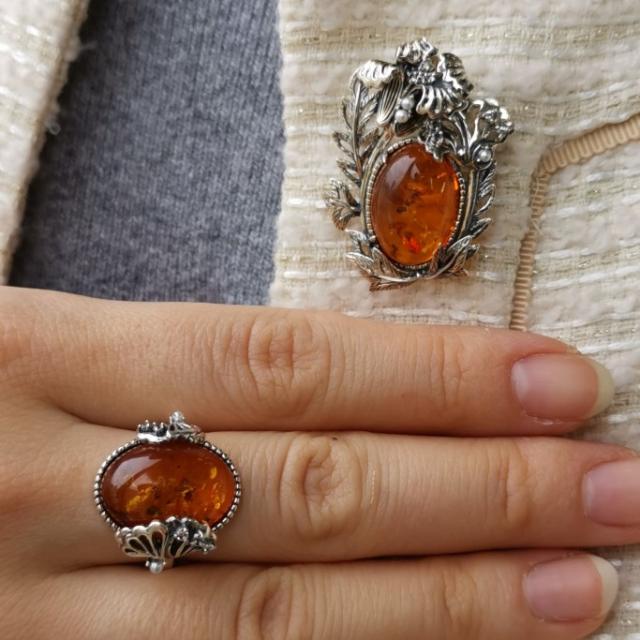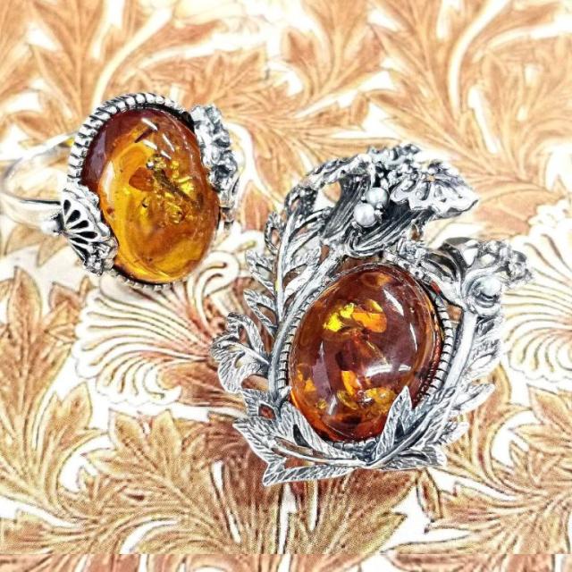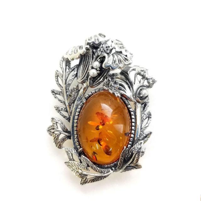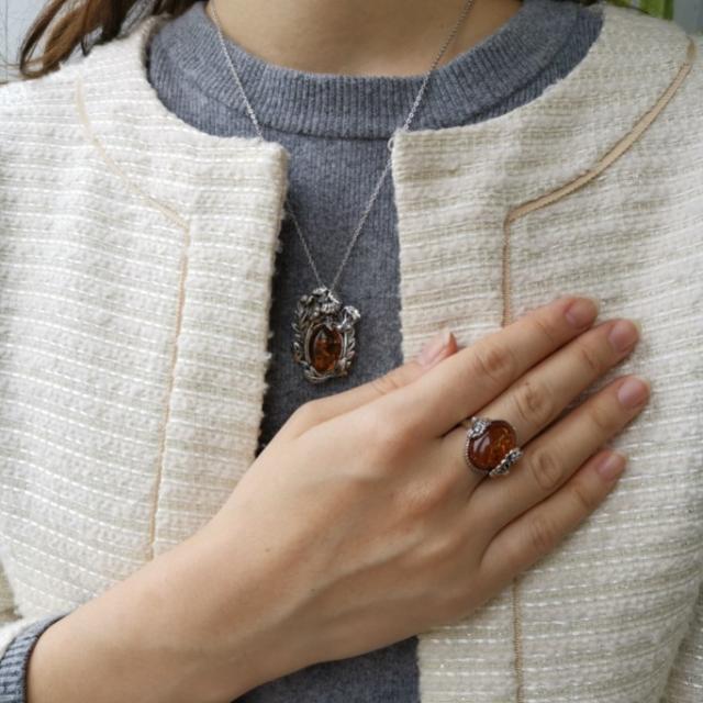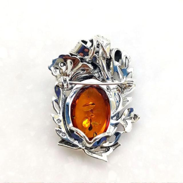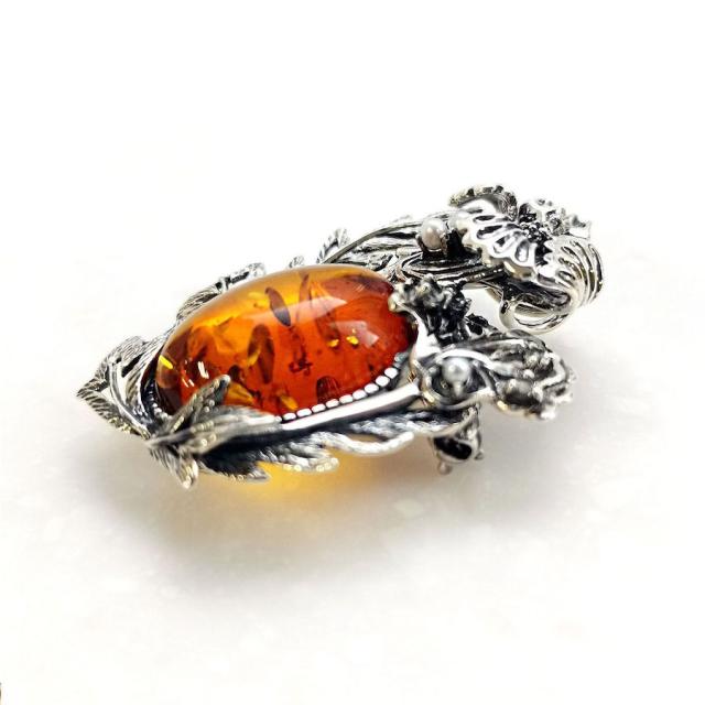 ウィリアム・モリス チューリップ ペンダント ブローチ ペンダントトップ (チェーンなし) ネックレス トップ ヘッド シルバー 琥珀 シルバー925