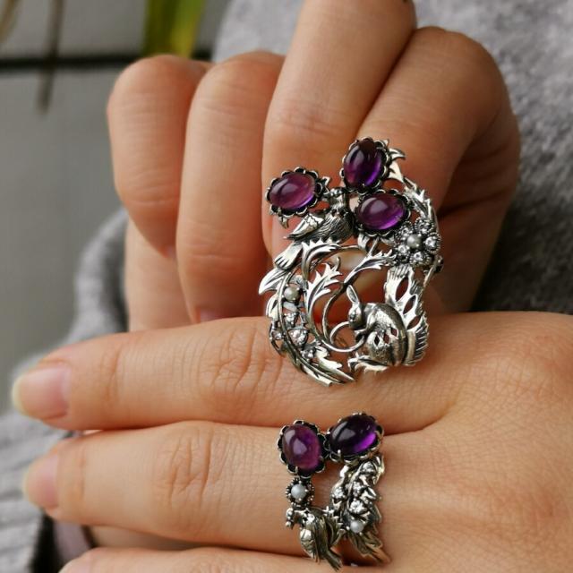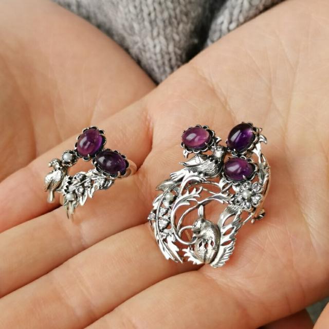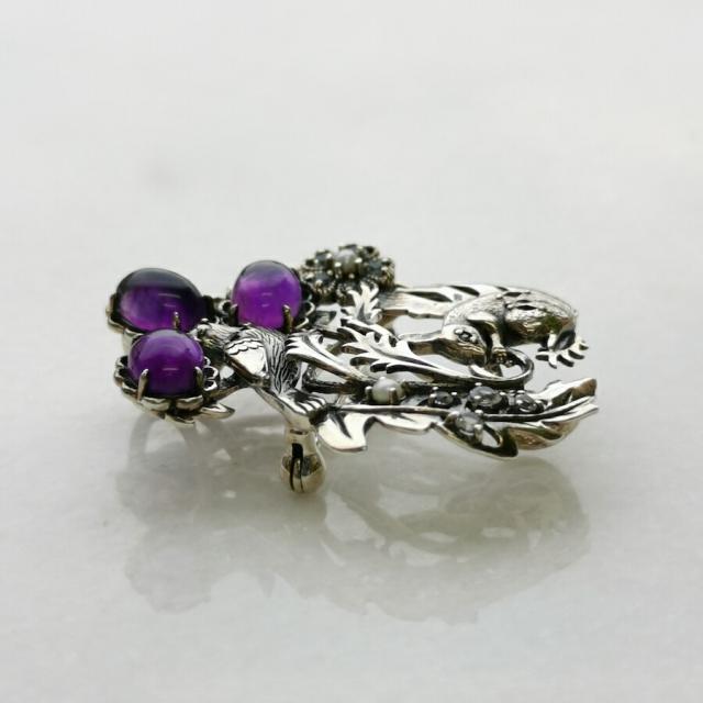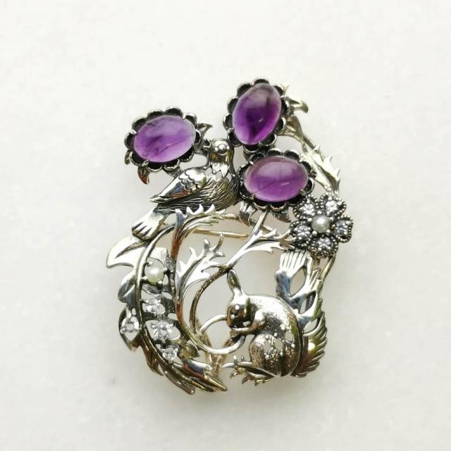ウィリアム・モリス リスとナイチンゲール ペンダント ブローチ ペンダントトップ (チェーンなし) ネックレス トップ ヘッド アメジスト シルバー925