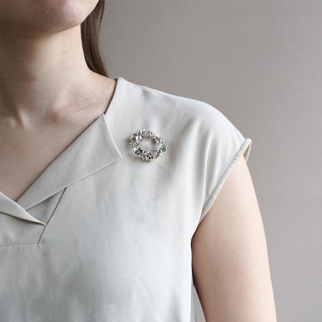 ブローチにもペンダントにも合わせやすいラウンドデザインです。