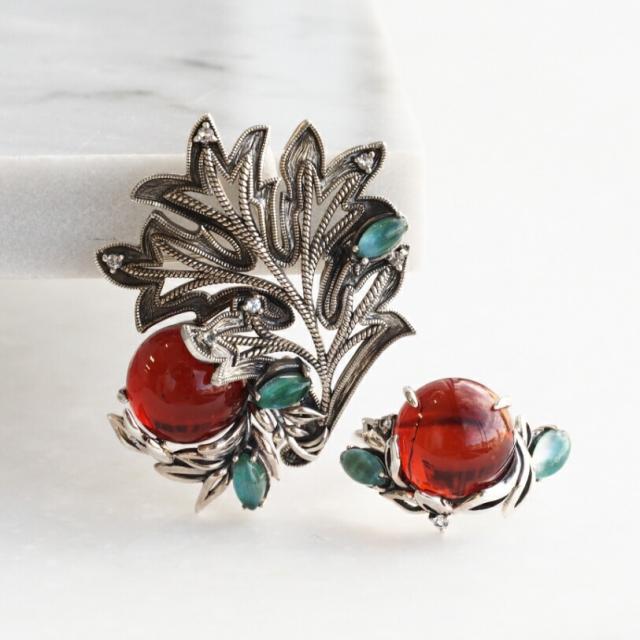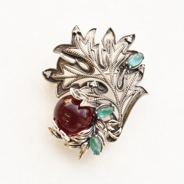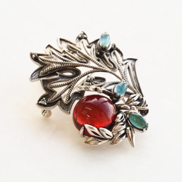 ウィリアム・モリス りんご ペンダント ブローチ ペンダントトップ (チェーンなし) ネックレス トップ ヘッド 琥珀 シルバー 925 銀細工 装飾 彫刻