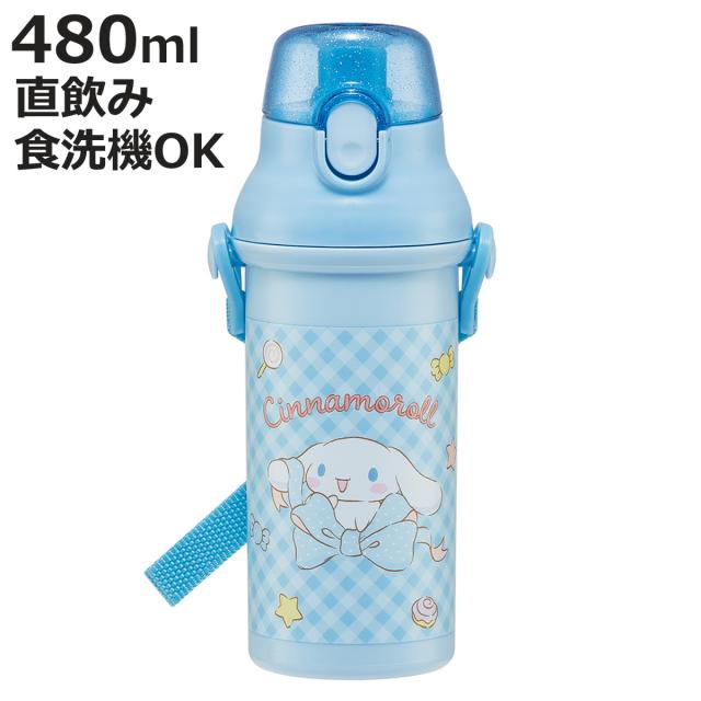 水筒 480ml 抗菌直飲プラボトル シナモロールビックリボン ( シナモロール 子供用 抗菌 プラスチック製 ダイレクトボトル 直飲み ワンタッチ 日本製 抗菌加工 AG 銀 ショルダーベルト付き 広口 軽量 ボトル ワンプッシュ )