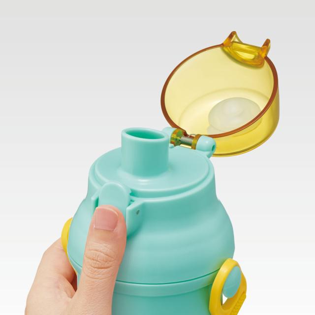 水筒の蓋はボタンを押すだけで開けることができるワンタッチ式です。飲み終わったら蓋をカチッと閉めるだけなので、小さなお子様でも簡単に開閉できます。