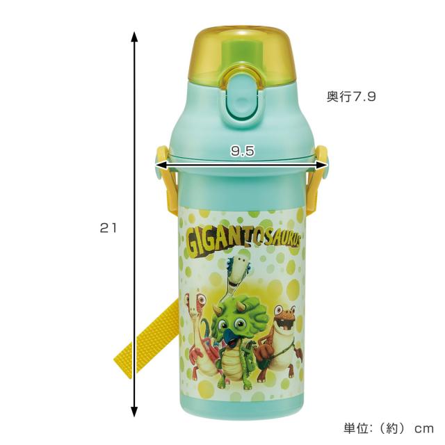 水筒 480ml 抗菌直飲プラボトル ギガントサウルス ( 子供用 抗菌 プラスチック製 ダイレクトボトル 直飲み ワンタッチ 日本製 抗菌加工 AG 銀 ショルダーベルト付き 広口 軽量 ボトル ワンプッシュ )