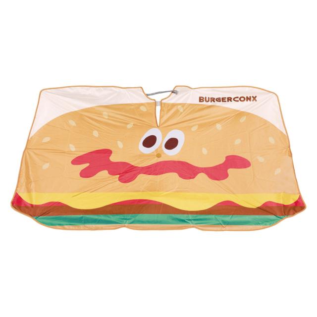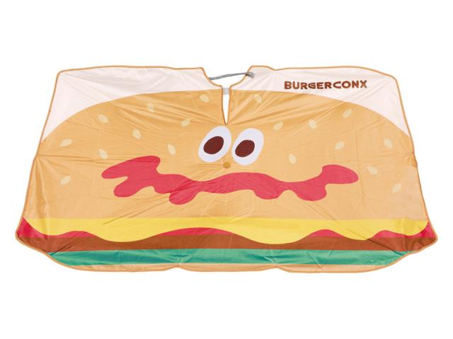 カーサンシェード 車用 パラソル型 サンシェード バーガーコンクス ( 傘 車 フロント カー用品 日よけ かわいい ハンバーガー サンシェイド 自動車 傘型 吸盤不要 劣化軽減 日除け 車用品 コンパクト 収納袋付き )