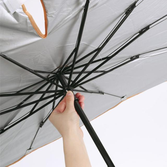 傘のようにパッと開くだけで簡単に設置できるサンシェードです。日差しをシャットアウトして車内温度の上昇を軽減します。吸盤を使わないのでフロントガラスに跡が付いたり、めくれたりする心配もありません。