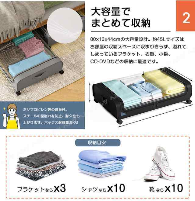ベッド下収納ボックス ホイール付き 衣類 靴 収納ボックス 折りたたみ式 ベッド 下 収納 収納ケース 布 ベッド下ストレージコン