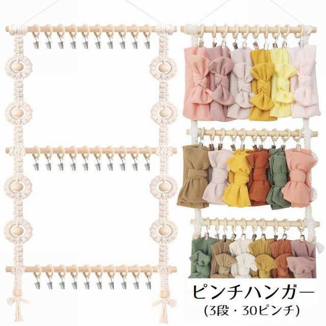 ピンチハンガー 30ピンチ 3段 縦型 縦型3列 タペストリー ヘアバンド バンダナ スカーフ リボン 収納ラック 壁収納 木目