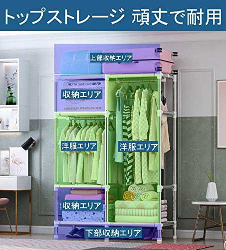 フルカバー付きワードローブ 大容量ワードローブ ジッパーで開閉 タンス 洋服ラック 組み立てが簡単