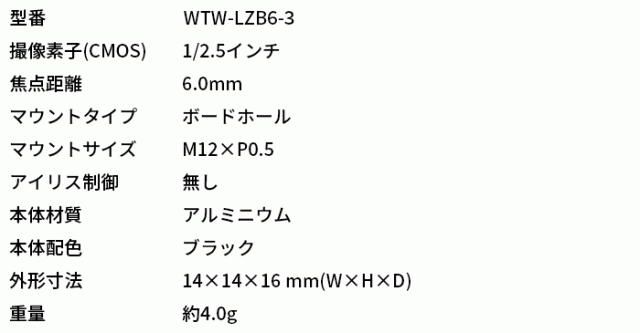■ WTW-LZB6-3 | 3MP対応 f=6mm ボードレンズ【防犯カメラ】【監視カメラ】【セキュリティーカメラ】【小型カメラ】【塚本無線】