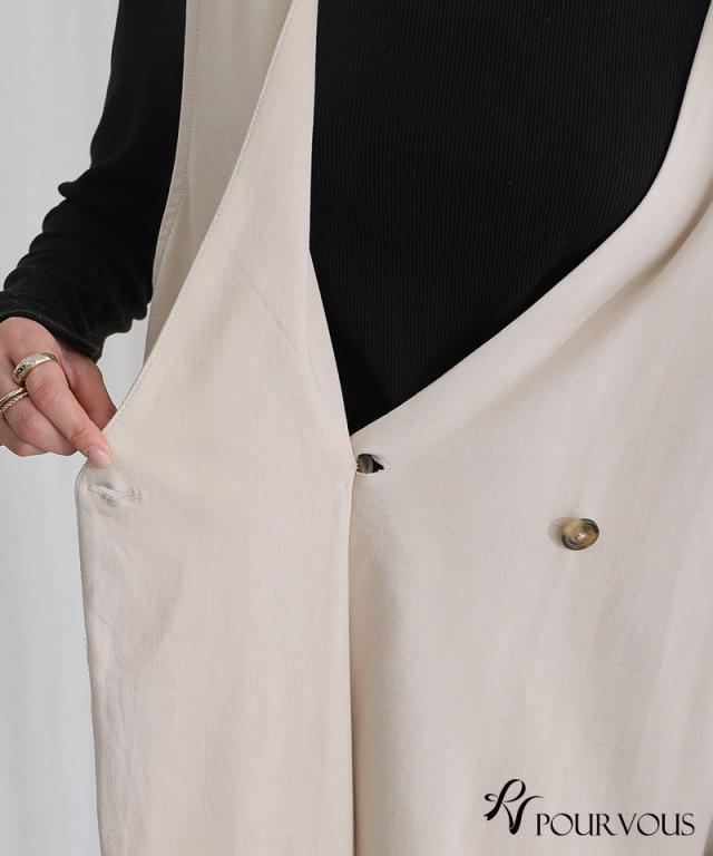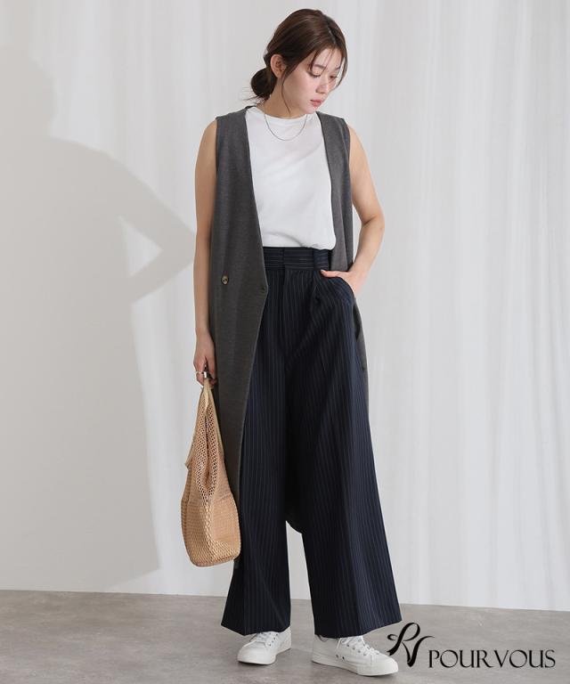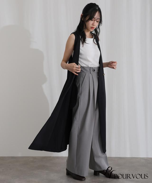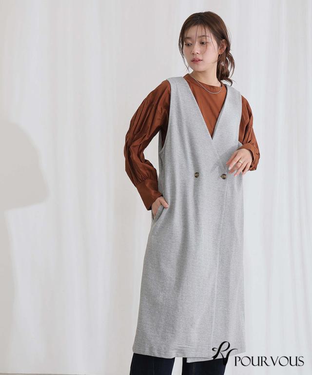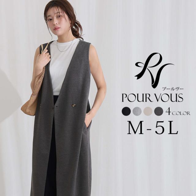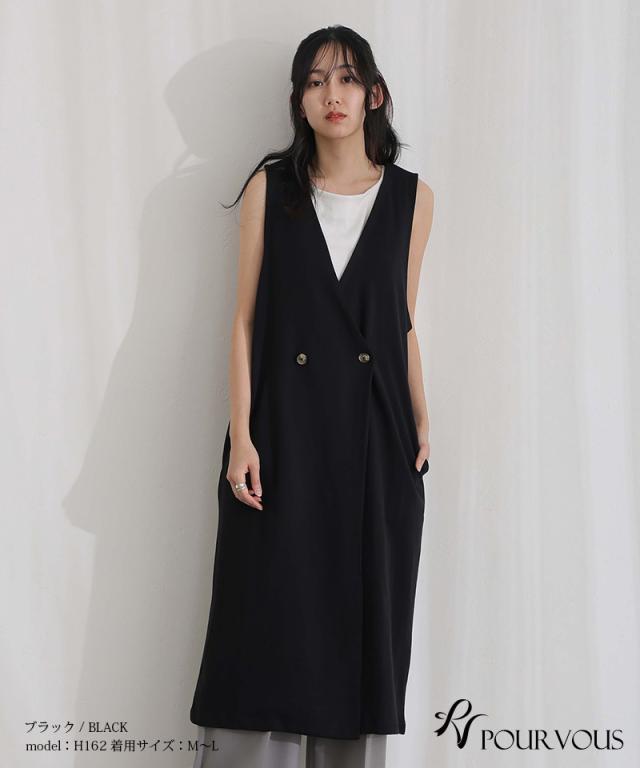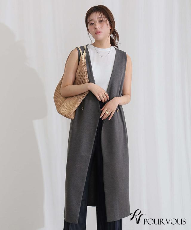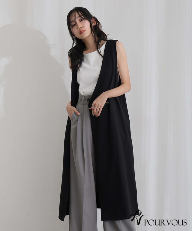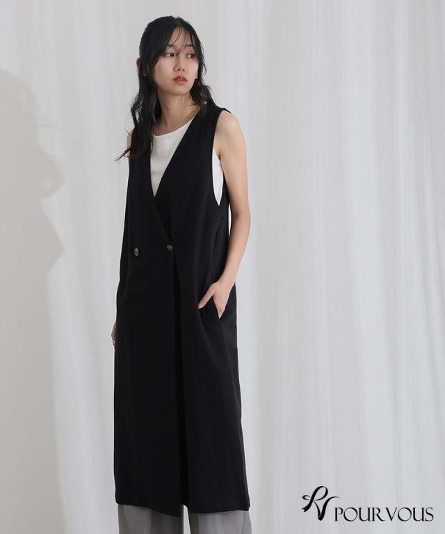 384251126 ミニ裏毛 ノーカラー リラックス ロングベスト ノースリーブ 半袖 vネック 無地 ロング ゆったり 着回し 着やせ シワになりにくい 韓国 体型カバー オーバーサイズ 大きめ 大きい