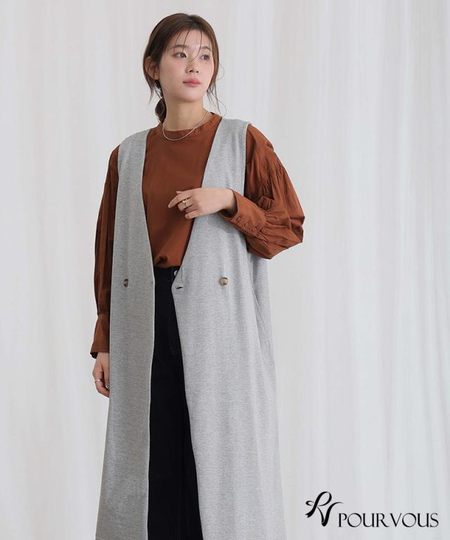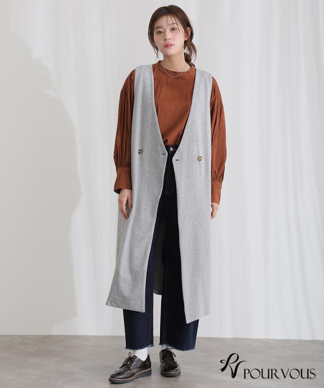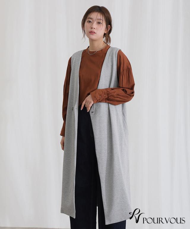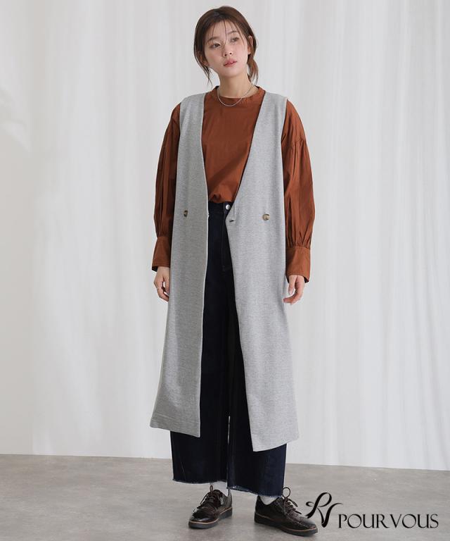 ミニ裏毛ノーカラーリラックスロングベスト【384251126】