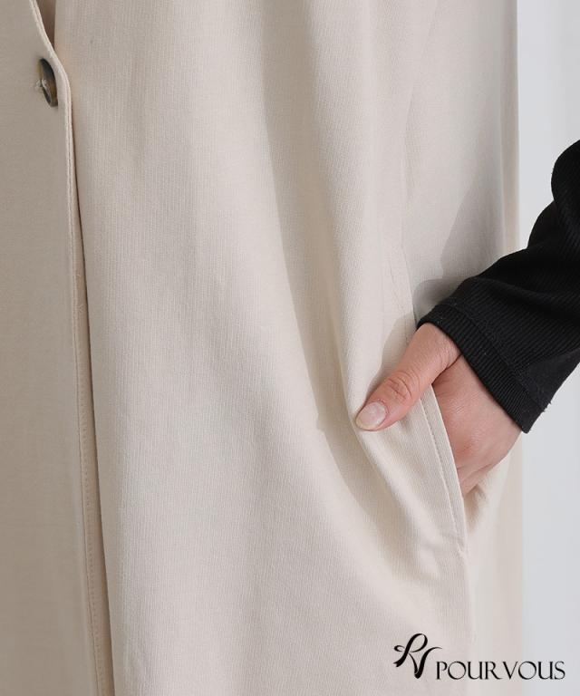 ノーカラーのデザインがシンプルでありながら洗練された雰囲気に