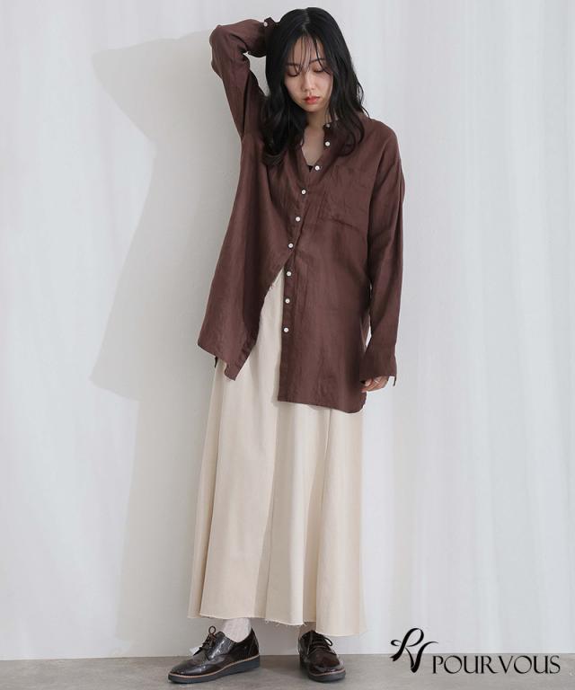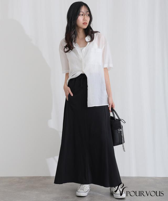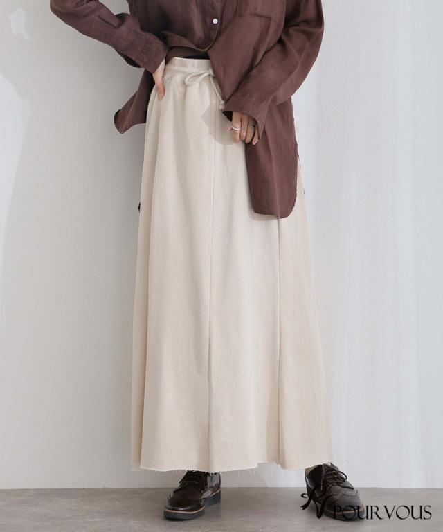 裾に施された切りっぱなしデザインが、カジュアルでありながらもトレンド感を演出します。