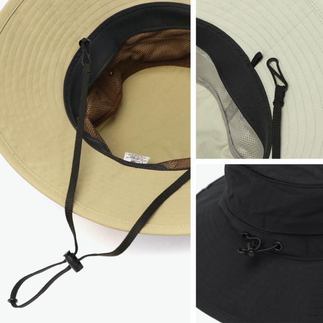 撥水・UVカット・抗菌防臭など機能充実の定番ハットです。軽量ナイロンと通気ベンチレーションで夏でも快適。サイズ調整も簡単にでき、あご紐付きでアウトドアやフェスなど日常以外で様々なシーンで出番の多いアイテムです。