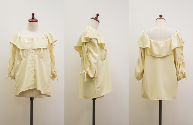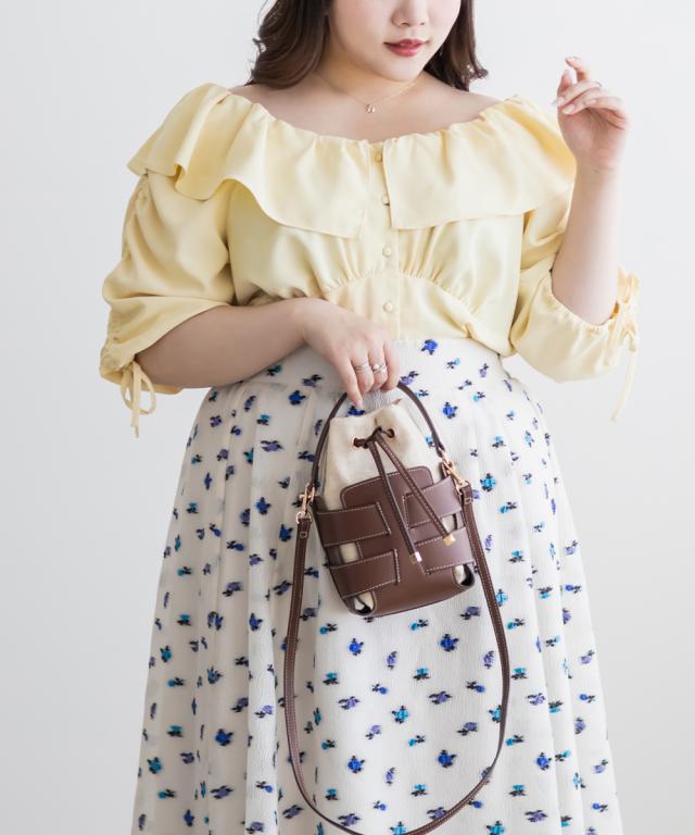 | 3Lサイズを着用しました。肩まわりはゴム仕様で、程よいフィット感があり、ずれにくくて安心感のある着心地です◎オフショルとしても着られる2WAY仕様で、気分やシーンに合わせたスタイリングが楽しめます♪フリル衿がしっかり広がって華やかなので、顔まわりが一気に明るくなり、シンプルなボトムでも着映えします。生地も軽やかで、春夏シーズンにぴったりな爽やかガーリーブラウスです◎ |