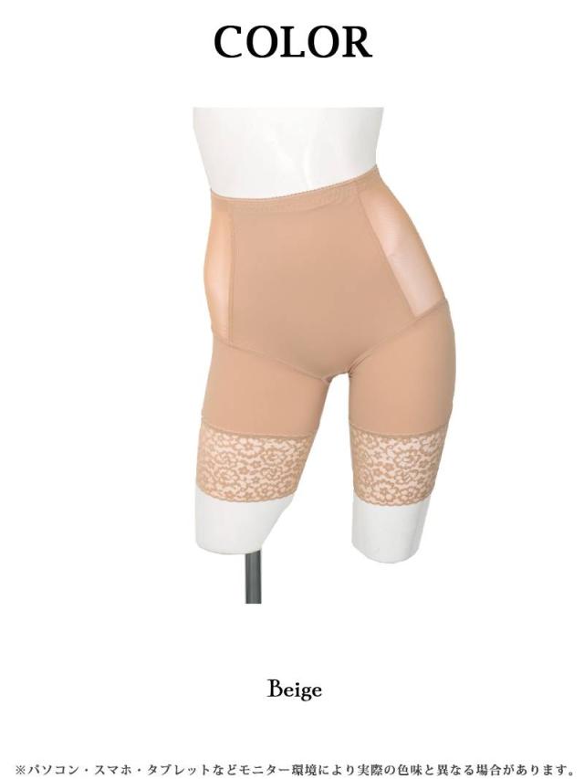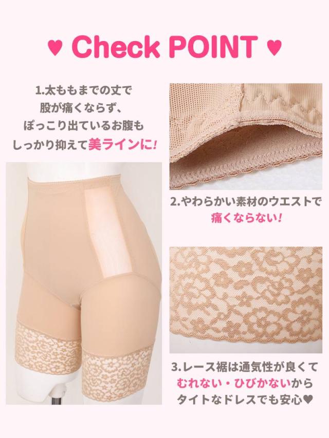 ☆太ももまでしっかりカバーしてくれるロング丈で、股の食い込みを防ぎつつお腹まわりもスッキリ補整