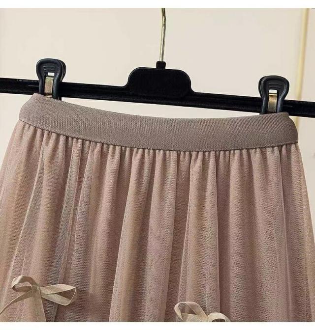 レディース ロングスカート 春夏秋 チュールスカート リボン付き ハイウエスト 通勤 薄手レディースファッション ボトムス スカート