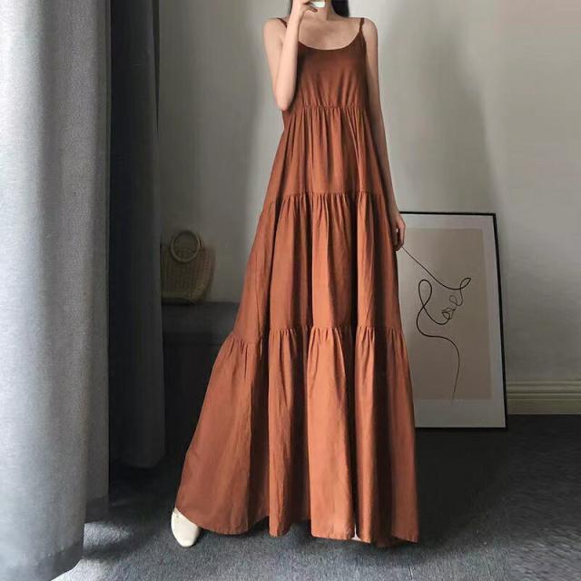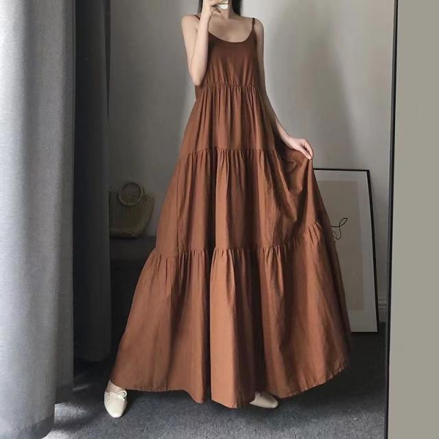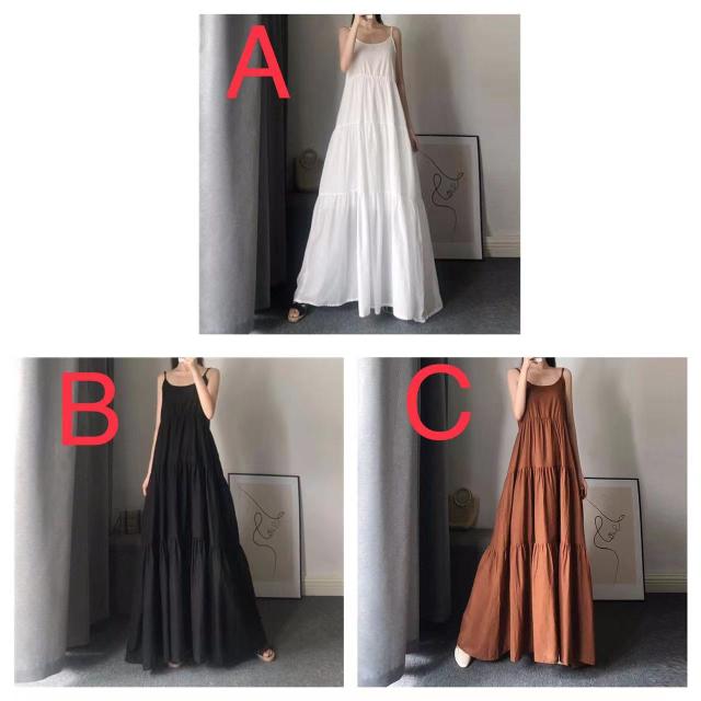 ロングワンピース レディース 夏 ゆったり キャミワンピース 通勤 カジュアル 可愛い 無地 ノースリーブ ホワイト ブラック ブラウン S M L XL 2XL SLWB013