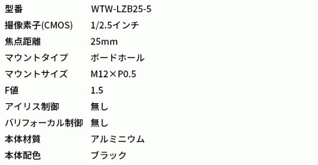 ■ WTW-LZB25-5 | 5MP対応 f=25mm ボードレンズ【防犯カメラ】【監視カメラ】【セキュリティーカメラ】【小型カメラ】【塚本無線】