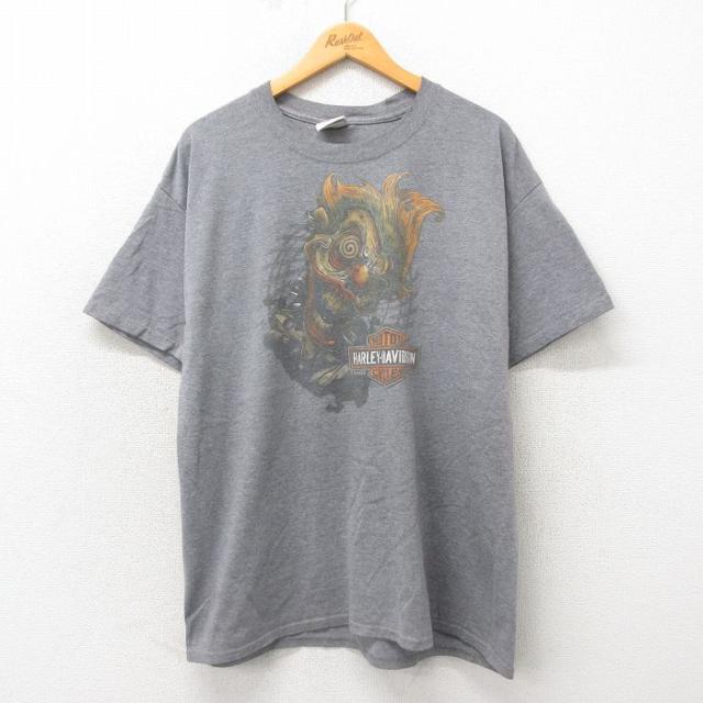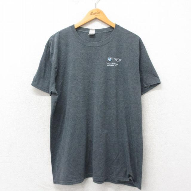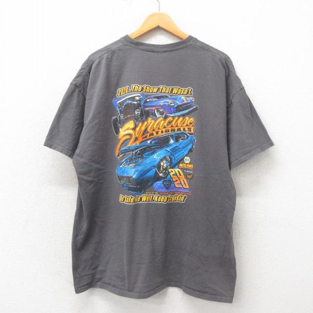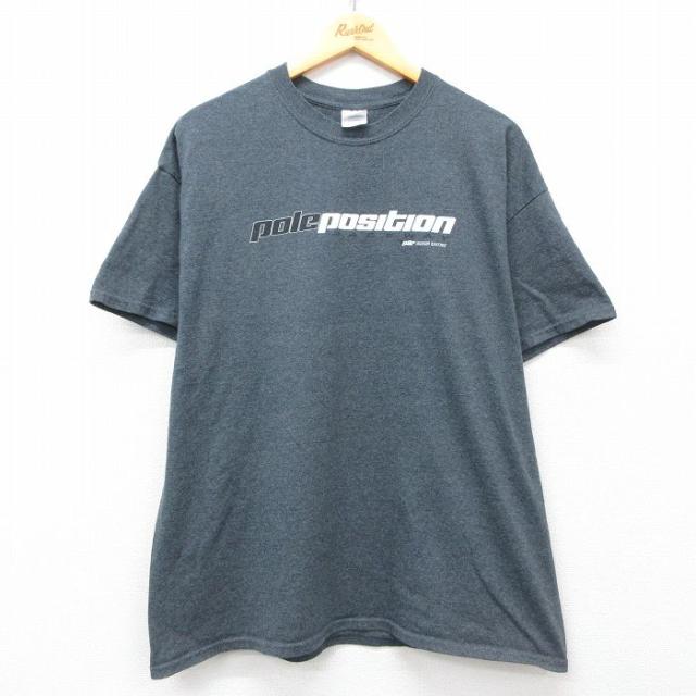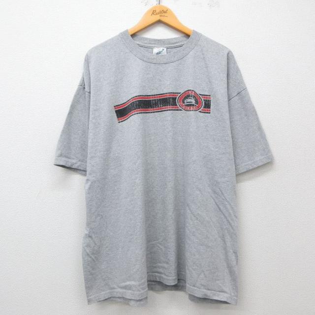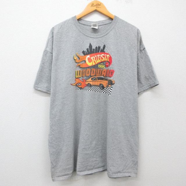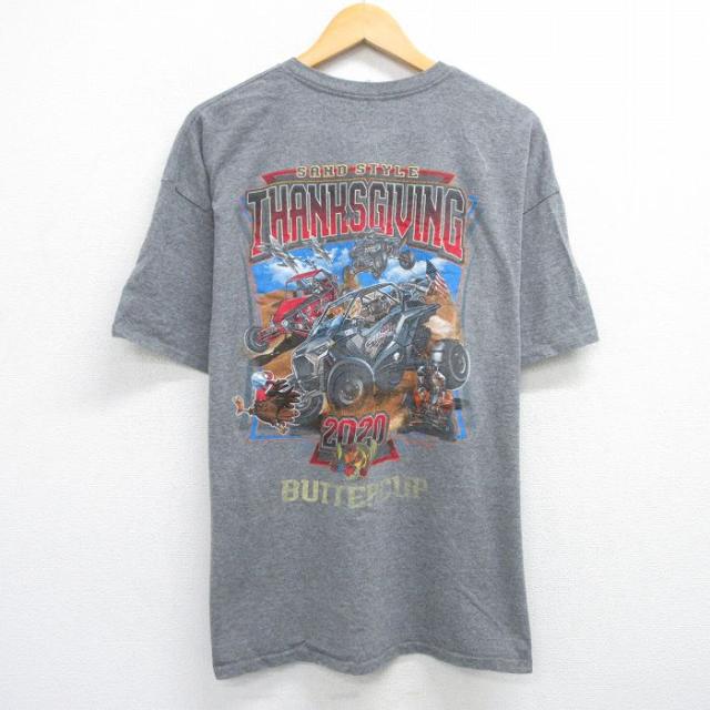 古着 半袖 Tシャツ メンズ レーシングカー THANKSGIVING 大きいサイズ クルーネック グレー 霜降り XLサイズ 中古 中古 古着