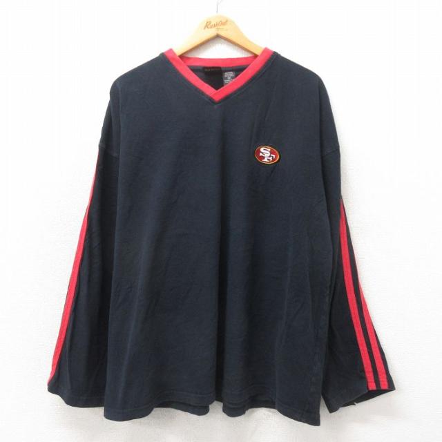 古着 長袖 フットボール Tシャツ メンズ NFL ミネソタバイキングス 刺繍 大きいサイズ ツートンカラー コットン Vネック 紫 パ 中古 古着