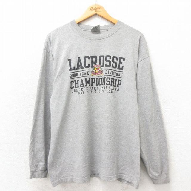 【商品名】 L★古着 チャンピオン Champion 長袖 Tシャツ メンズ アイスホッケー クルーネック グレー 霜降り