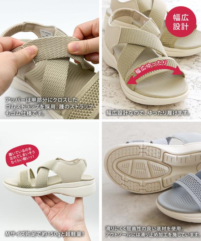 スポーツサンダル レディース 厚底 疲れない おしゃれ 4.5cm ソール クロスゴム 軽量 歩きやすい 痛くない 疲れにくい 通気性 履きやすい 幅広 春 夏 旅行 デイリー リゾート レジャー カジュアル コンフォート サンダル 黒 ブラック ライトベージュ ライトグレー hc4506