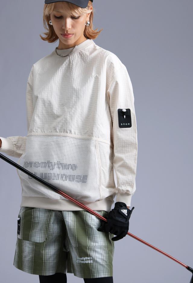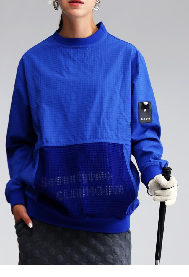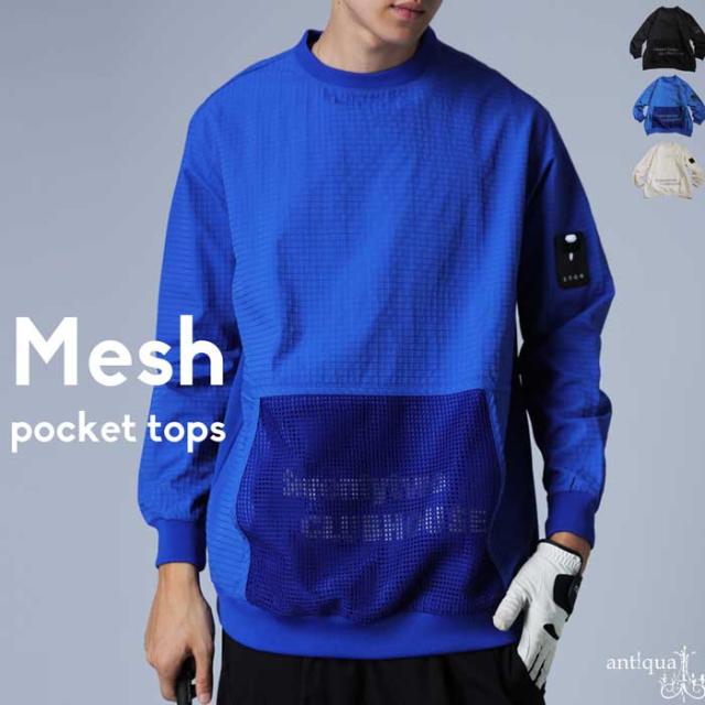 zst-00123z 長袖 メッシュポケット ゴルフウェア 軽量 通気性 モックネック 無地 ロゴ ブランドロゴ ロゴプリント 普段着 ゆったり シンプル スポーティー プルオーバー ユニセックス