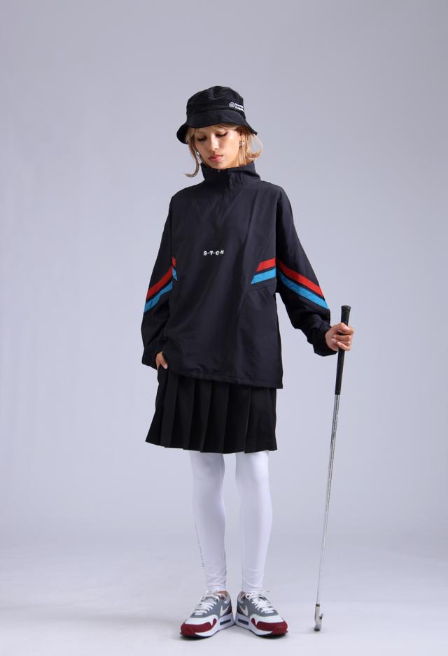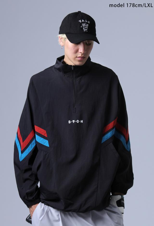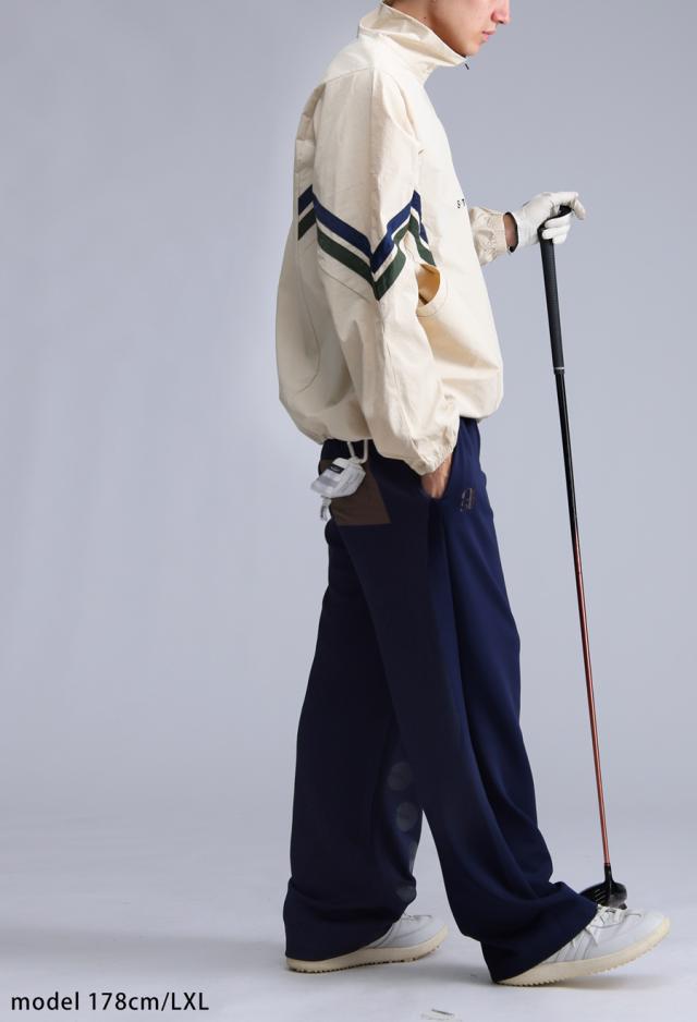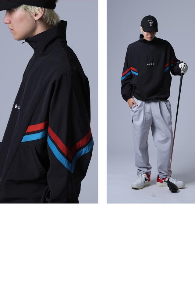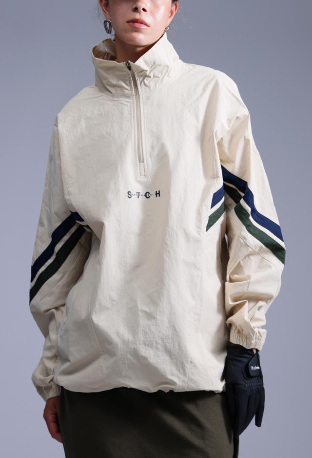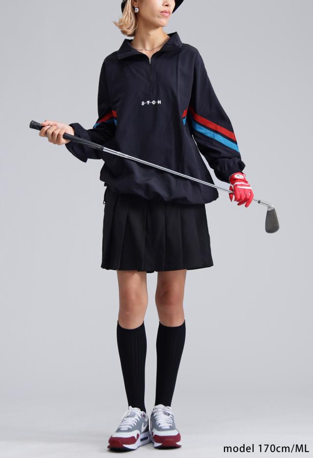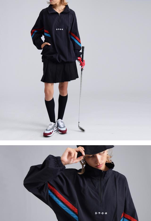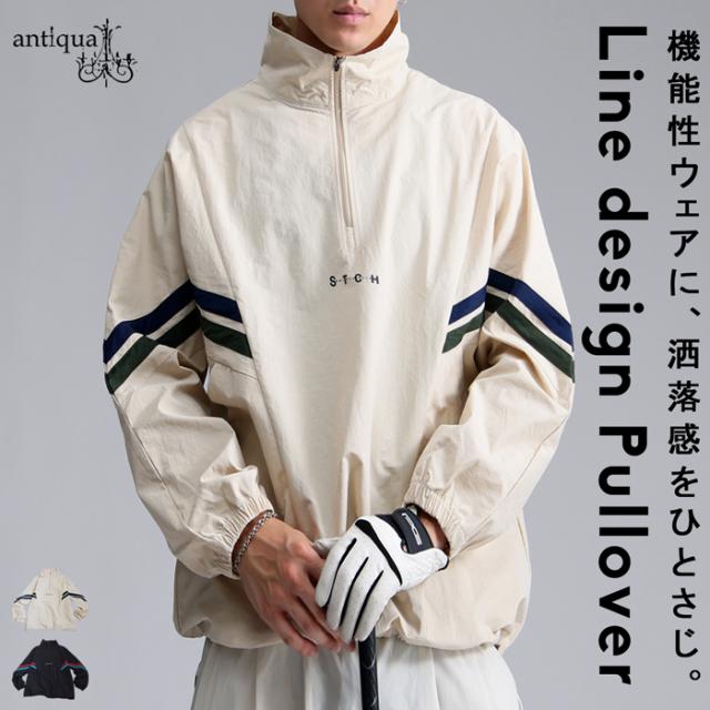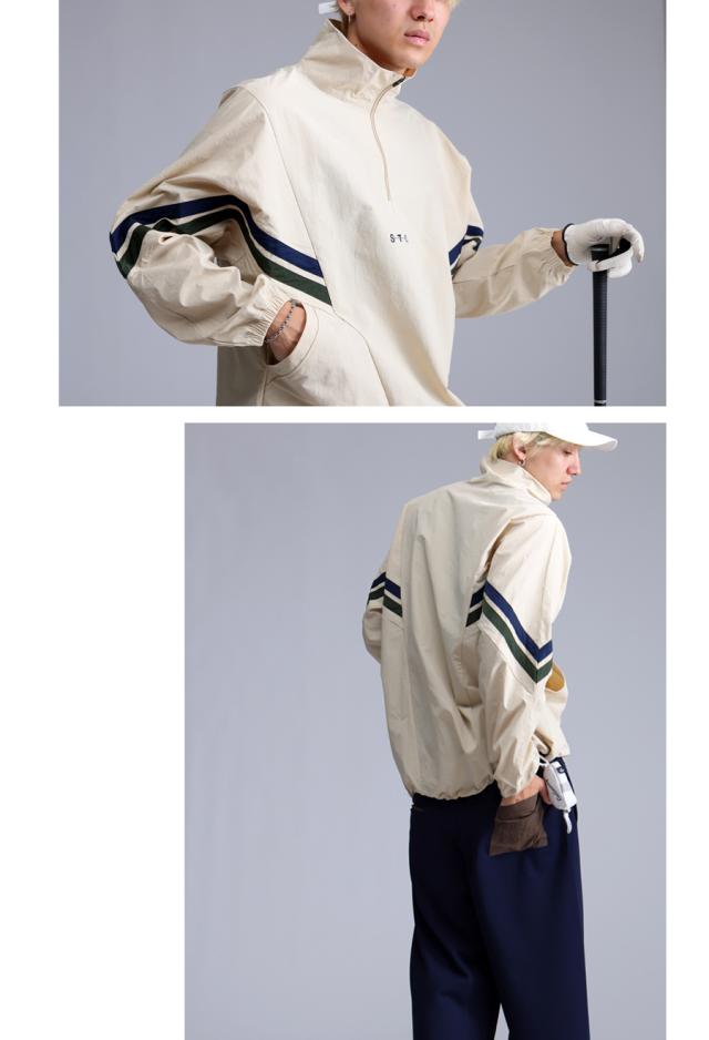 zst-00118z プルオーバー トップス メンズ 長袖 ラインデザイン ハーフジップ スタンドネック ナイロン ドロストコード付き ゴルフウェア アウター ユニセックス ロゴ