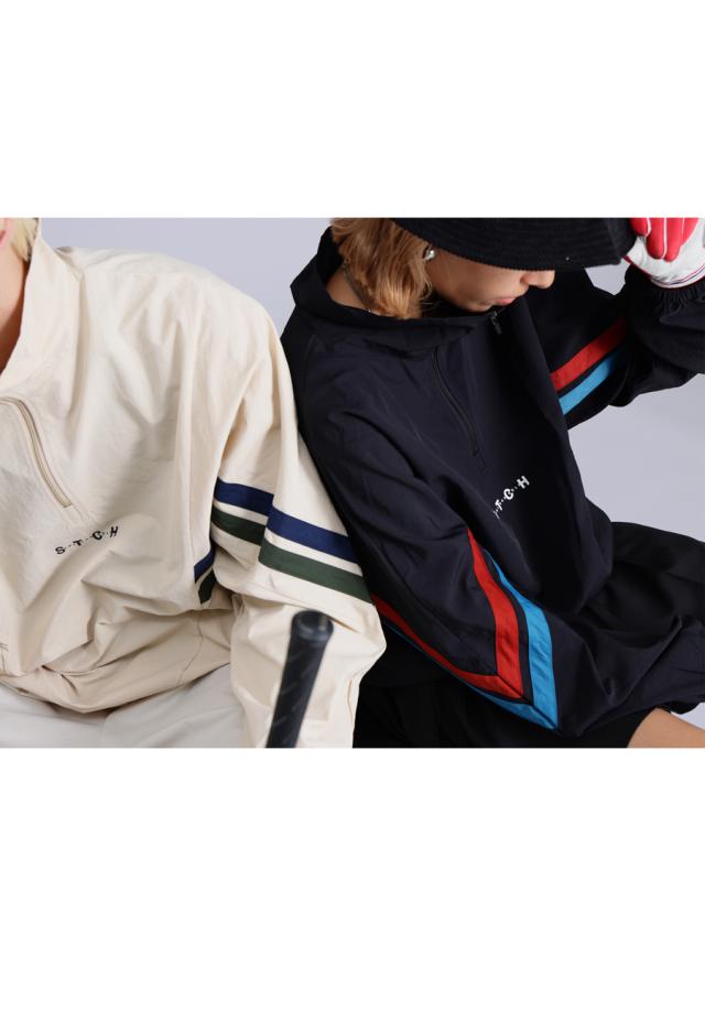 スポーティと洒落感を両立する、配色ラインが特徴的なナイロンプルオーバーが登場。