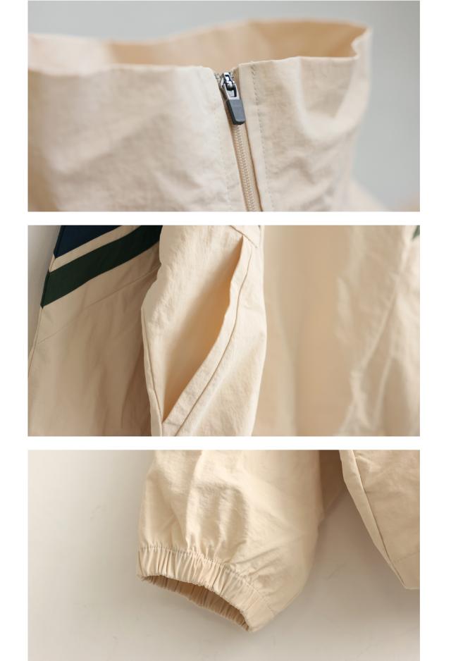 袖口と裾はゴム仕様でしっかりフィットしつつ、裾にはドロストコード付きでシルエットの調整も自在。