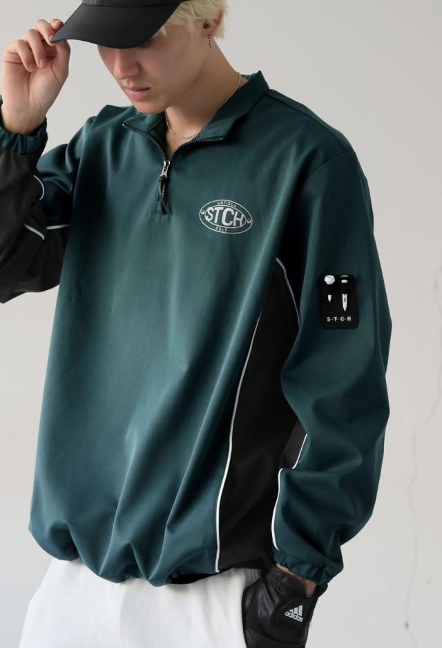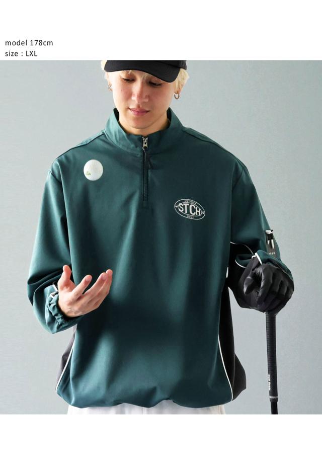 配色切り替えが目を惹く、ハーフジッププルオーバータイプのゴルフウェア。