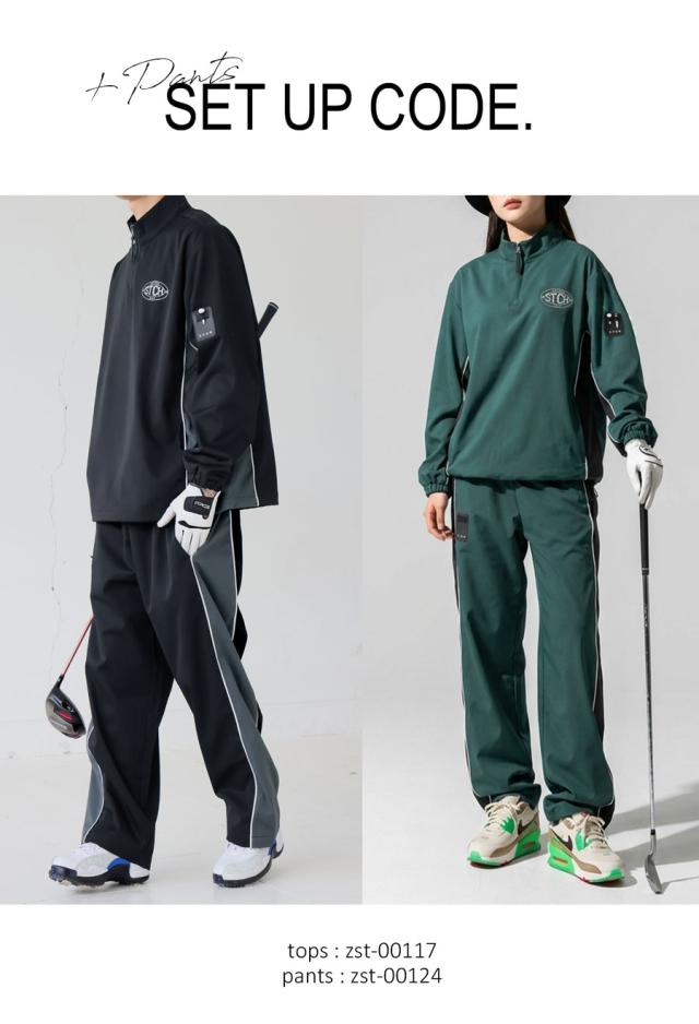 zst-00117 ハイネック 無地 長袖 ゴルフウェア ドロスト スポーツウェア カジュアル 軽量 おしゃれ ストレッチ ゆったり ゴルフ プルオーバー ブランドロゴ ワンポイント セットアップ