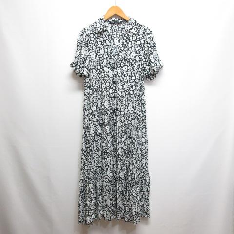 【中古】ザラ ZARA 花柄 半袖 マキシ シャツ ワンピース XS 黒 ブラック レディース
